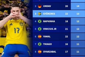 体育资讯4月2日讯 世预赛附加赛决赛,约克雷斯打进绝杀球帮助瑞典拿到世界杯入场券。进入2026年,约克雷斯在俱乐部和国家队已经打进13球,位居五大联赛所有球员第3位。