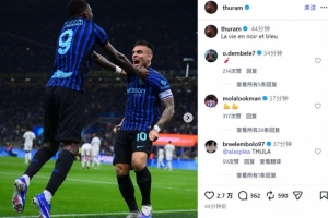 他也在赛后通过社媒晒出自己和劳塔罗的庆祝合照,并配文:“蓝黑人生。”