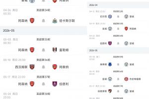 阿森纳英超剩余赛程:
