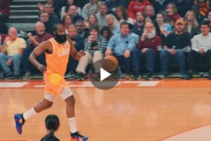 体育资讯3月25日讯 今日骑士战胜魔术的比赛中,哈登上演个人赛季首扣。